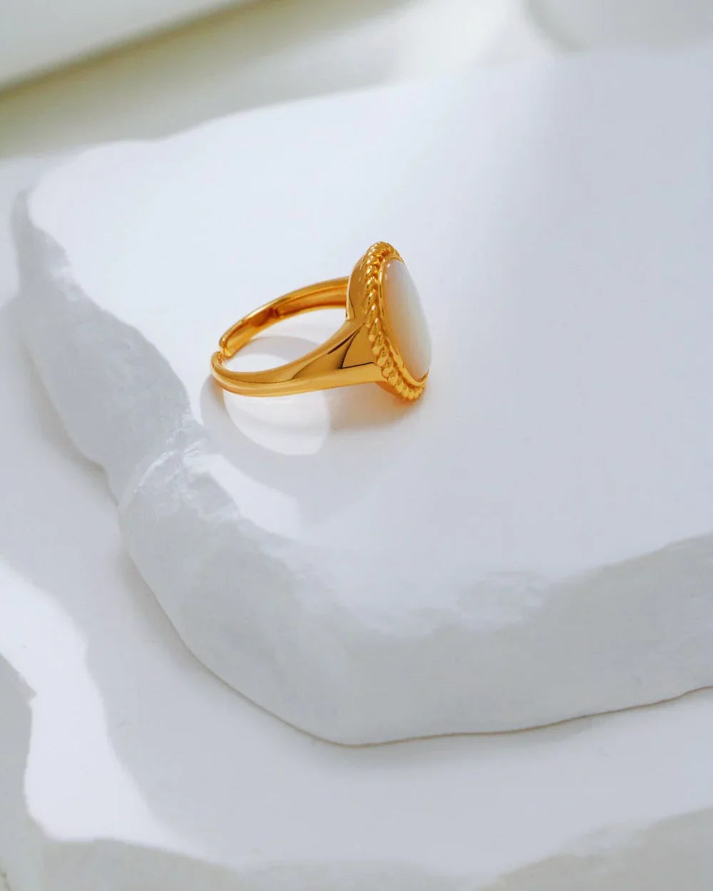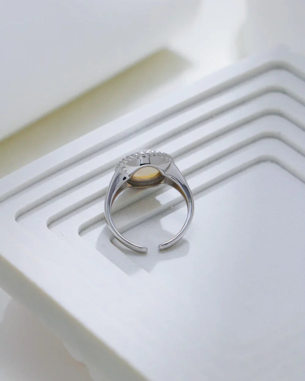 The Mercury Shell Ring blends minimalist elegance with celestial inspiration. Crafted in S925 sterling silver, its bold oval setting frames a luminous white shell, echoing the refined grace of European design. The natural sheen of the shell adds a touch of mystery, reflecting light with subtle brilliance.