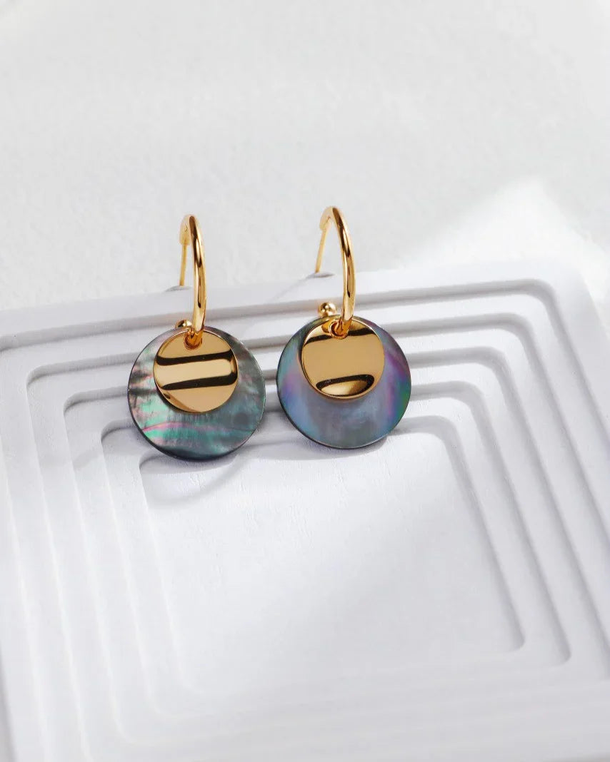 The Vintage Moon Shell Earrings blend timeless elegance with modern style. Featuring refined gold-plated hoops with a vintage touch, paired with natural gray shell, they radiate a captivating charm. The combination creates a perfect balance of retro sophistication and contemporary fashion. Every detail reflects delicate craftsmanship, making these earrings a unique statement piece for any occasion.